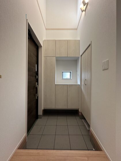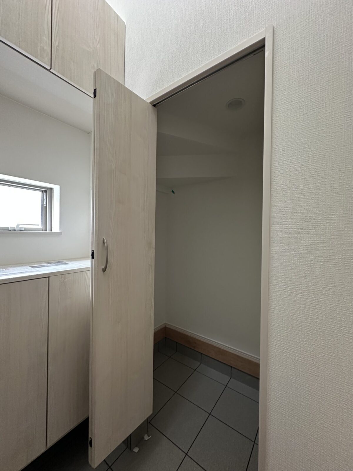 玄関はシューズクローク完備しておりベビーカーやゴルフバック等の収納もでき、玄関はいつもスッキリときれいな状態が保てます。