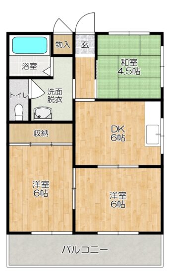 間取内容 | DK6帖 洋室6帖 洋室6帖 和室4.5帖 | ||