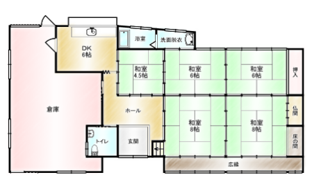 | 間取内容 | DK6帖 1階 和室8帖 1階 2室和室6帖 1階 2室和室4.5帖 1階 1室 | ||