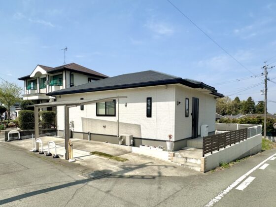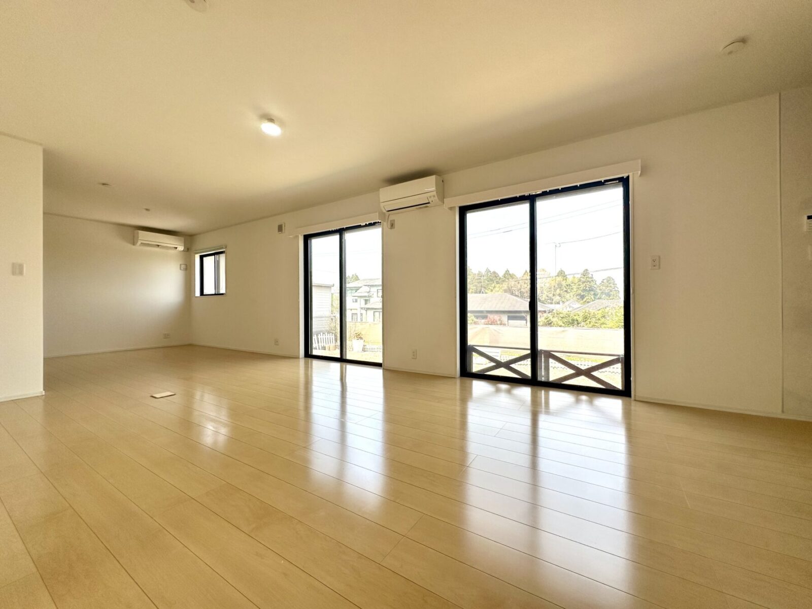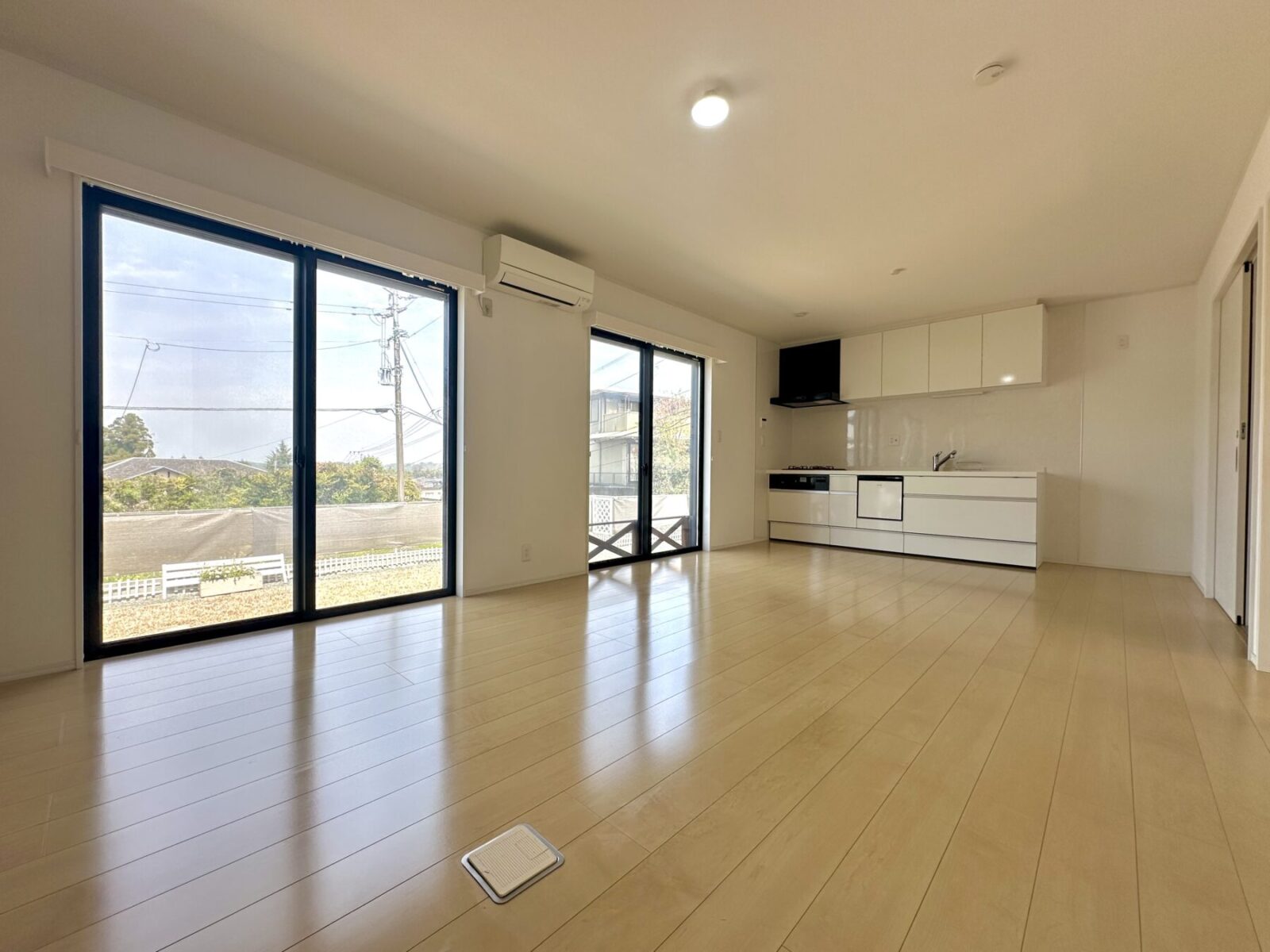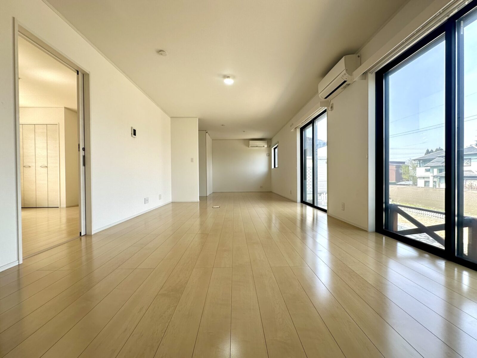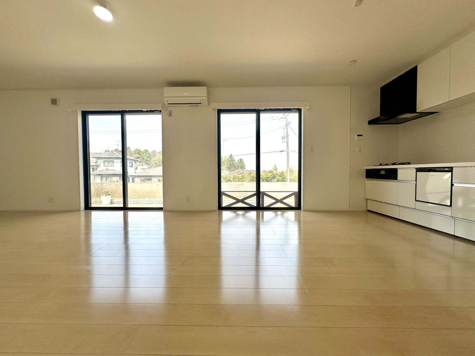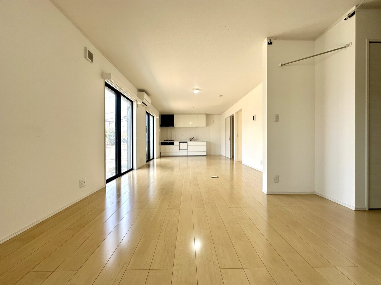 築浅の平屋住宅で、広々としたLDKは25帖あり、ダイニングセットに大きなソファーを配置し、ゆったりとした時を過ごせそうです。