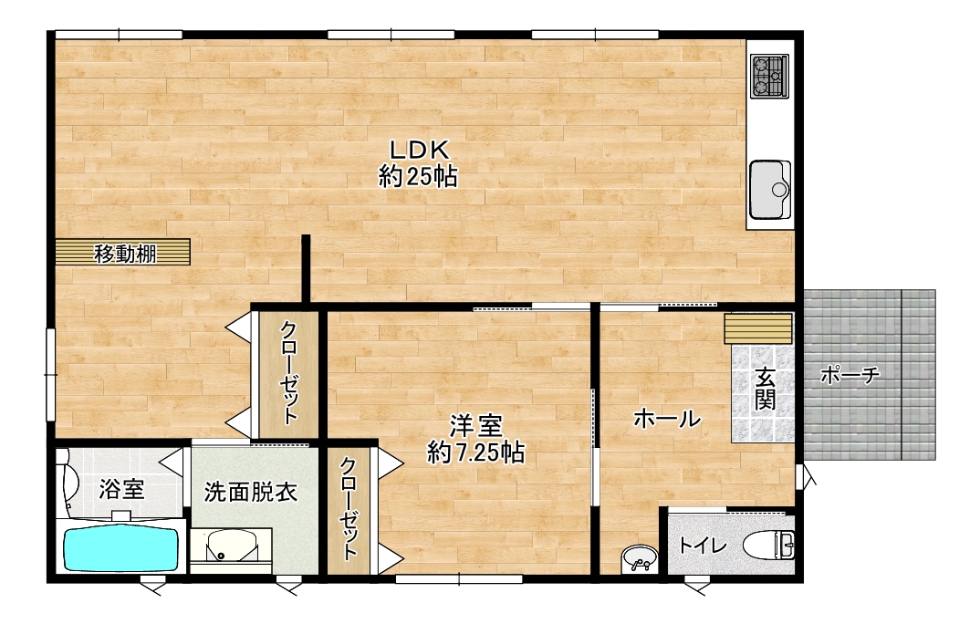 | 間取内容 | LDK25帖 1階 洋室7.2帖 | ||